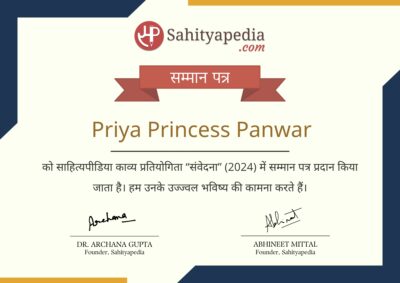 Activity Post Likes Comment Likes Comments Priya princess panwar liked their certificate सम्मान पत्र – “संवेदना” – काव्य प्रतियोगिता 10 months ago Priya princess panwar liked their post हरियाली तीज। 1 year ago Priya princess panwar liked their post बारिश की बूंदें और मिडिल क्लास। 1 year ago Priya princess panwar liked their post दोस्ती। 1 year ago Priya princess panwar liked their post कुछ पन्ने मेरी जिंदगी के...। पेज न.2000 1 year ago Priya princess panwar liked Sahityapedia's post विजेता सूची- “संवेदना” – काव्य प्रतियोगिता 1 year ago Priya princess panwar liked their post दिल पहले शीशा था,अब पत्थर बना लिया। 1 year ago Priya princess panwar liked their post बार-बार लिखा, 1 year ago Priya princess panwar liked their post विषय जल बचाओ। 1 year ago Priya princess panwar liked their post विषय-माँ। 1 year ago Priya princess panwar liked their certificate Poetry Writing Challenge Certificate 2 years ago Priya princess panwar liked Sahityapedia's post Poetry Writing Challenge-3 2 years ago Priya princess panwar liked Sahityapedia's post Poetry Writing Challenge-3 Result 2 years ago Priya princess panwar liked their post My dear note book. 2 years ago Priya princess panwar liked their post I love u Mummy. 2 years ago Priya princess panwar liked their post Sorrow and I. 2 years ago Priya princess panwar liked their post Yes,u r my love. 2 years ago Priya princess panwar liked their post You are beautiful. 2 years ago Priya princess panwar liked their post Respect women! 2 years ago Priya princess panwar liked their post Love says. 2 years ago Previous Page 2 Next