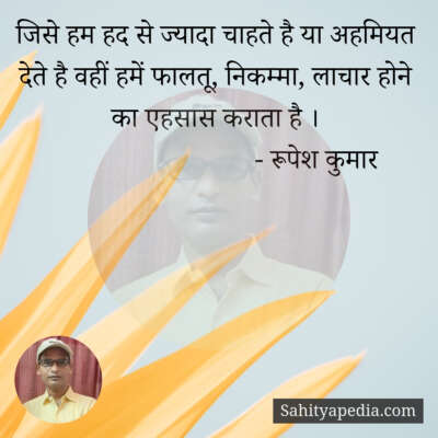 Activity Post Likes Comment Likes Comments रुपेश कुमार liked their post दीपों का त्योहार : दिपावली 30 days ago रुपेश कुमार liked their post माँ लक्ष्मी वहीं ठहरती है, जहाँ मन निर्मल हो 1 month ago रुपेश कुमार liked their post मैं क्या हूं ? 6 months ago रुपेश कुमार liked their post माँ का संघर्ष 6 months ago रुपेश कुमार liked their post पश्चाताप 10 months ago रुपेश कुमार liked their post सत्य सनातन का महापर्व : महाकुंभ 10 months ago रुपेश कुमार liked their post ख़ुदा से मौत माँग लेना, 11 months ago रुपेश कुमार liked their post सूर्य की उपासना 1 year ago रुपेश कुमार liked their post हे माँ कुष्मांडा 1 year ago रुपेश कुमार liked their post हे ब्रह्माचारिणी जग की शक्ति 1 year ago रुपेश कुमार liked their post जिसे हम हद से ज्यादा चाहते है या अहमियत देते है वहीं हमें फा 1 year ago रुपेश कुमार liked their post रूपेश को मिला "बेस्ट राईटर ऑफ द वीक सम्मान- 2023" 3 years ago रुपेश कुमार liked their post बहुत याद आता है 5 years ago