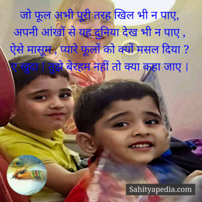 Activity Post Likes Comment Likes Comments वीर कुमार जैन liked ओनिका सेतिया 'अनु ''s post अधूरी ख्वाहिशें 6 months ago वीर कुमार जैन liked Begum Habiba's post Kya huwa 6 months ago वीर कुमार जैन liked ओनिका सेतिया 'अनु ''s post जो फूल अभी पूरी तरह खिल भी न पाए, 6 months ago वीर कुमार जैन liked अंकित शर्मा 'इषुप्रिय''s post दिन भर खूब कमाया लेकिन, मुँह तक गया निवाला बासी। 6 months ago वीर कुमार जैन liked मनोज कर्ण's post जागो राजू, जागो... 3 years ago वीर कुमार जैन liked Dr P K Shukla's post तात तुम पिता बन गये 4 years ago वीर कुमार जैन liked संजीव शुक्ल 'सचिन''s post पितृ वंदना 4 years ago वीर कुमार जैन liked Manisha Manjari's post शवदाह 4 years ago वीर कुमार जैन liked ओनिका सेतिया 'अनु ''s post जनरल रावत को शत शत नमन 4 years ago वीर कुमार जैन liked Sahityapedia's post उत्सव - कहानी प्रतियोगिता 4 years ago वीर कुमार जैन liked ओनिका सेतिया 'अनु ''s post पथभ्रष्ट 4 years ago वीर कुमार जैन liked Rajesh vyas's post मेरे इस देश में अब तो ___ मुक्तक 4 years ago वीर कुमार जैन liked नेहा आज़ाद's post पुराने गलियारे 4 years ago वीर कुमार जैन liked ओनिका सेतिया 'अनु ''s post सब्र की इंतहा 4 years ago वीर कुमार जैन liked ओनिका सेतिया 'अनु ''s post अरे तालिबानियों !कुछ तो खौफ खाओ। 4 years ago वीर कुमार जैन liked Rajesh vyas's post नश्वर काया ___ कविता 4 years ago वीर कुमार जैन liked ओनिका सेतिया 'अनु ''s post आज़ादी की उलझन 4 years ago वीर कुमार जैन liked संजीव शुक्ल 'सचिन''s post हिन्द के जवान 4 years ago वीर कुमार जैन liked ओनिका सेतिया 'अनु ''s post शम्मा ए जिंदगी 4 years ago वीर कुमार जैन liked ओनिका सेतिया 'अनु ''s post तिरंगे की आह 4 years ago Page 1 Next