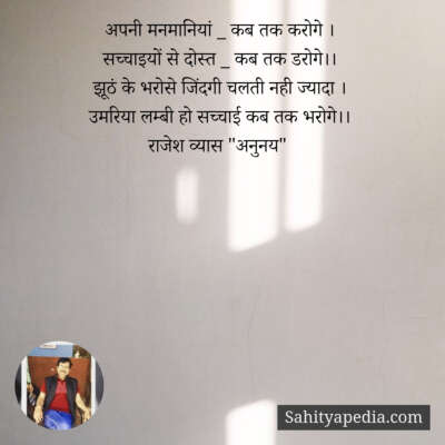 Activity Post Likes Comment Likes Comments Manisha Manjari liked सुरेन्द्र शर्मा 'शिव''s post ज़रूरी कवि 11 months ago Manisha Manjari liked Paras Nath Jha's post जिंदगी से सामना 11 months ago Manisha Manjari liked Dr. Kishan tandon kranti's post "सोचो जरा" 11 months ago Manisha Manjari liked Sahityapedia's post Poetry Writing Challenge-4 11 months ago Manisha Manjari liked their book Frozen In Time (A Cursed Love Story) 1 year ago Manisha Manjari liked Sahityapedia's post "सत्य की खोज" – काव्य प्रतियोगिता 2 years ago Manisha Manjari liked प्रकाश जुयाल 'मुकेश''s post शिखर के शीर्ष पर 2 years ago Manisha Manjari liked 'अशांत' शेखर's post ✍️सारे अपने है✍️ 2 years ago Manisha Manjari liked Buddha Prakash's book Tathagat Buddha Manjari 2 years ago Manisha Manjari liked Dr Archana Gupta's post अगर प्यार की राह पर हम चलेंगे 2 years ago Manisha Manjari liked Shyam Sundar Subramanian's post कवि की लेखनी 2 years ago Manisha Manjari liked VEDANTA PATEL's post *** सागर की लहरें....! *** 2 years ago Manisha Manjari liked Sahityapedia's post Poetry Writing Challenge-2 2 years ago Manisha Manjari liked Rajesh vyas's post अपनी मनमानियां _ कब तक करोगे । 2 years ago Manisha Manjari liked आकाश महेशपुरी's post अम्न का दौर पुनः देश में लाने के लिए 2 years ago Manisha Manjari liked Dr. Kishan tandon kranti's post "सत्य" 2 years ago Manisha Manjari liked Dr. Kishan tandon kranti's post "मकर संक्रान्ति" 2 years ago Manisha Manjari liked Priya Maithil's post अंदर तेरे शक्ति अगर गंभीर है 2 years ago Manisha Manjari liked Seema gupta,Alwar's post मकर संक्रांति पर्व 2 years ago Manisha Manjari liked आर.एस. 'प्रीतम''s post बुराई कर मगर सुन हार होती है अदावत की 2 years ago Page 1 Next