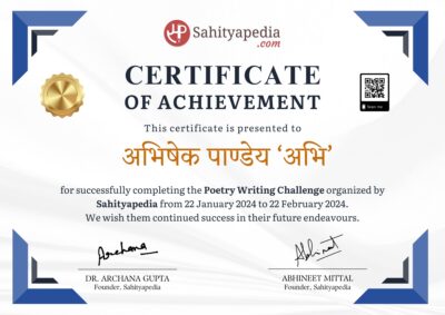 Activity Post Likes Comment Likes Comments Balu liked अभिषेक पाण्डेय 'अभि ’'s certificate Poetry Writing Challenge Certificate 2 years ago Balu liked अभिषेक पाण्डेय 'अभि ’'s certificate Poetry Writing Challenge Certificate 2 years ago Balu liked अभिषेक पाण्डेय 'अभि ’'s post मुलाकात ! 2 years ago Balu liked अभिषेक पाण्डेय 'अभि ’'s post जो पहले थी वो अब भी है...! 2 years ago Balu liked अभिषेक पाण्डेय 'अभि ’'s post कौन सताए 2 years ago Balu liked अभिषेक पाण्डेय 'अभि ’'s post बड़े नहीं फिर भी बड़े हैं । 2 years ago Balu liked अभिषेक पाण्डेय 'अभि ’'s post देखा है 2 years ago Balu liked अभिषेक पाण्डेय 'अभि ’'s post बदलता गांव 2 years ago Balu liked अभिषेक पाण्डेय 'अभि ’'s post उसकी आंखें ही पढ़ आया 2 years ago Balu liked अभिषेक पाण्डेय 'अभि ’'s post इतिहास हो तुम 2 years ago Balu liked अभिषेक पाण्डेय 'अभि ’'s post हे राम! तुम्हें शिरसा प्रणाम 2 years ago Balu liked अभिषेक पाण्डेय 'अभि ’'s post सिंचित मन 2 years ago Balu liked अभिषेक पाण्डेय 'अभि ’'s post छूट रहा है। 2 years ago Balu liked अभिषेक पाण्डेय 'अभि ’'s post नज़रें 2 years ago Balu liked अभिषेक पाण्डेय 'अभि ’'s post आसान जिंदगी 2 years ago Balu liked अभिषेक पाण्डेय 'अभि ’'s post बेरंग 2 years ago Balu liked अभिषेक पाण्डेय 'अभि ’'s post गुमनामी 2 years ago Balu liked अभिषेक पाण्डेय 'अभि ’'s post फुरसत 2 years ago Balu liked अभिषेक पाण्डेय 'अभि ’'s post अच्छी नहीं 2 years ago Balu liked अभिषेक पाण्डेय 'अभि ’'s post बे-शुमार 2 years ago Page 1 Next