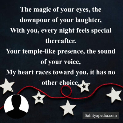 Activity Post Likes Comment Likes Comments Lohit Tamta liked shambhavi Mishra's post मिलना था तुमसे, 1 year ago Lohit Tamta liked Manisha Manjari's post किसने कहा, आसान था हमारे 'हम' से 'तेरा' और 'मेरा' हो जाना 1 year ago Lohit Tamta liked Shweta Chanda's post "Two Souls, One Journey: A Marriage Poem" 2 years ago Lohit Tamta liked Shweta Chanda's post I lose myself in your love, 2 years ago Lohit Tamta liked Shweta Chanda's post The magic of your eyes, the downpour of your laughter, 2 years ago Lohit Tamta liked Manisha Manjari's post जिस्म तो बस एक जरिया है, प्यार दो रूहों की कहानी। 3 years ago Lohit Tamta liked Seema 'Tu hai na''s post जिद्दी परिंदा 'फौजी' 3 years ago Lohit Tamta liked Anamika Singh's post काश बचपन लौट आता 3 years ago Lohit Tamta liked Seema 'Tu hai na''s post फिर भी 3 years ago Lohit Tamta liked Seema 'Tu hai na''s post सिर्फ तुम 3 years ago Lohit Tamta liked Dalveer Singh's post शहीद-ए-आजम भगतसिंह 3 years ago Lohit Tamta liked Dalveer Singh's post एक फौजी का अधूरा खत... 3 years ago Lohit Tamta liked Dalveer Singh's post मैं समंदर के उस पार था 3 years ago Lohit Tamta liked Seema 'Tu hai na''s post सर्वश्रेष्ठ 3 years ago Lohit Tamta liked Anamika Singh's post मेरे पापा 3 years ago Lohit Tamta liked Seema 'Tu hai na''s post फौजी 3 years ago Lohit Tamta liked Anamika Singh's post फौजी बनना कहाँ आसान है 3 years ago Lohit Tamta liked Dalveer Singh's post हर फौजी की कहानी 3 years ago Lohit Tamta liked Writer_ermkumar's post इश्क़ दुबारा भी होता हैं क्या 3 years ago Lohit Tamta liked Manisha Manjari's post इस दर्द को यदि भूला दिया, तो शब्द कहाँ से लाऊँगी। 3 years ago Page 1 Next