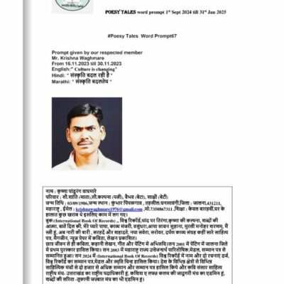 Activity Post Likes Comment Likes Comments krishna waghmare , कवि,लेखक,पेंटर liked their post वतन की धरती करे पुकार 5 months ago krishna waghmare , कवि,लेखक,पेंटर liked their post सावन 5 months ago krishna waghmare , कवि,लेखक,पेंटर liked their post कल्पना 5 months ago krishna waghmare , कवि,लेखक,पेंटर liked their post #भूली बिसरी यादे 5 months ago krishna waghmare , कवि,लेखक,पेंटर liked their post My heart trusts you. Never forget, my love. 6 months ago krishna waghmare , कवि,लेखक,पेंटर liked their certificate पुस्तक प्रकाशन प्रमाणपत्र : मन की लहरें 1 year ago krishna waghmare , कवि,लेखक,पेंटर liked Rajesh Kumar Kaurav's book Naivedyam 1 year ago krishna waghmare , कवि,लेखक,पेंटर liked Rajendra kumar tailor's book Ye Khushboo Ka Safar (Kavya Sangrah) 1 year ago krishna waghmare , कवि,लेखक,पेंटर liked Rita Singh's book Antarvedna (Kavya Sangrah) 1 year ago krishna waghmare , कवि,लेखक,पेंटर liked Dheerja Sharma's book Lamhen Kharch Ho Gaye 1 year ago krishna waghmare , कवि,लेखक,पेंटर liked Lalni Bhardwaj's book Dhalti Saanjh 1 year ago krishna waghmare , कवि,लेखक,पेंटर liked LOVE KUMAR 'PRANAY''s book Tum Kaho To Sahi (Muktak Sangrah) 1 year ago krishna waghmare , कवि,लेखक,पेंटर liked LOVE KUMAR 'PRANAY''s book Paarijaat Hoon Main 1 year ago krishna waghmare , कवि,लेखक,पेंटर liked Nitesh Shah's book Vichaaron Kee Udaan 1 year ago krishna waghmare , कवि,लेखक,पेंटर liked Kanchan Khanna's book Kanchani-Bayar (2) 1 year ago krishna waghmare , कवि,लेखक,पेंटर liked Khajan Singh Nain's book Sankraman Kaal 1 year ago krishna waghmare , कवि,लेखक,पेंटर liked Ramswaroop Dinkar's book Pani Se Pani Par Likhna 1 year ago krishna waghmare , कवि,लेखक,पेंटर liked दीपक नील पदम् { Deepak Kumar Srivastava "Neel Padam" }'s book Jheel Shaant Hai (Seedha Saral Jo Man Mere Ghata) 1 year ago krishna waghmare , कवि,लेखक,पेंटर liked Dr. Arti 'Lokesh' Goel's book Karagar (Upanyas) 1 year ago krishna waghmare , कवि,लेखक,पेंटर liked Shalini Mishra Tiwari's book Ehsason Ke Seepaj 1 year ago Page 1 Next