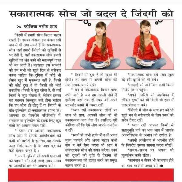 अपने अन्दर उत्साह का संचार करे परिस्थितियां कैसी भी हो मुस्कुराना सीखें, जिन्दगी को जीना सीखें जिन्दगी के प्रति अपनी सोच सदैव सकारात्मक रखें ,जिन्दगी के प्रति आपका लगाव, उत्साह आपके प्रत्येक कार्य में दिखाई देना चाहिए, अपने जीवन में घटने वाली हर दुःखद घटना को अपनी असफलताओ और अपनी कमजोरियों को किसी भी परिस्थिति में अपने ऊपर हावी न होने दे अपने आत्मविश्वास को हर विपरीत परिस्थिति में बनाये रखें, यकीन मानिए आपका स्वयं पर पूर्ण विश्वास होना ही आपको बिना किसी सहायता के हर विपरीत परिस्थिति से निकालने की क्षमता रखता है, अपनी ज़िंदगी में सहजता, स्वाभाविकता को स्थान दें, इससे आपकी जिन्दगी भी आसान होगी और आप अपनी जिन्दगी को अच्छे से जी भी सकेंगे स्वयं को हमेशा अहंकार, परनिंदा आदि जैसे अवगुणों से दूर रखें , साथ आपके कुछ नहीं जाने वाला बाकी रह जाएगा तो बस आपका दूसरों के साथ किया गया अच्छा व्यवहार एक अच्छी याद के रूप में लोगों के दिलों में हमेंशा ज़िंदा रहेगी,प्रयास करें कि कभी भी आपके अंदर की इंसानियत खत्म न होनेपाये,बच्चों से प्यार करना सीखें तो कमज़ोर,असहाय जनों की सहायता के लिए हमेशा आगे रहें अपने बुज़ुर्गो की सेवा करें दूसरों के काम आने का प्रयास करें, अपनी सोच को तार्किक रखें वहीं सही ग़लत में अंतर करना भी सीखें, अपने दृष्टिकोण को सदैव सकारात्मक रखें सदैव अपने अंदर की आवाज़ को सुने जिसे हम ज़मीर भी कहते हैं, और इस बात का भी विरोध ध्यान रखें कि आप स्वयं भी कभी अपनी इच्छाओं को अपनी खुशियों को नज़र अंदाज़ न करें, क्योंकि जब तक हम स्वयं संतुष्ट नहीं होंगे तब तक हम संतुष्ट समाज का निर्माण नहीं कर सकते हैं, दूसरों का ख़्याल रखने के साथ अपना भी ख़याल रखिये अपने अंदर के शौक को कभी मरने मत दीजिए आप हैं तभी ये ज़िन्दगी है और ये तभी खूबसूरत होगी जब आप खुश और संतुष्ट होंगे।