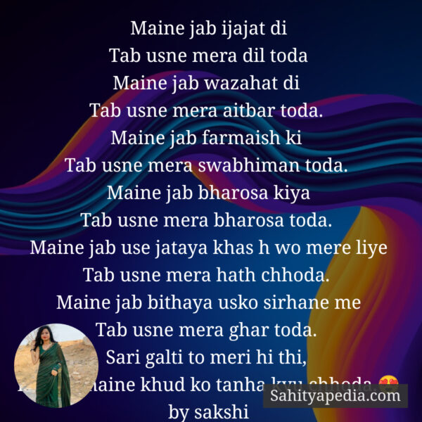 Fir bhi maine khud ko tanha kyu chhoda.ЁЯШН by sakshi