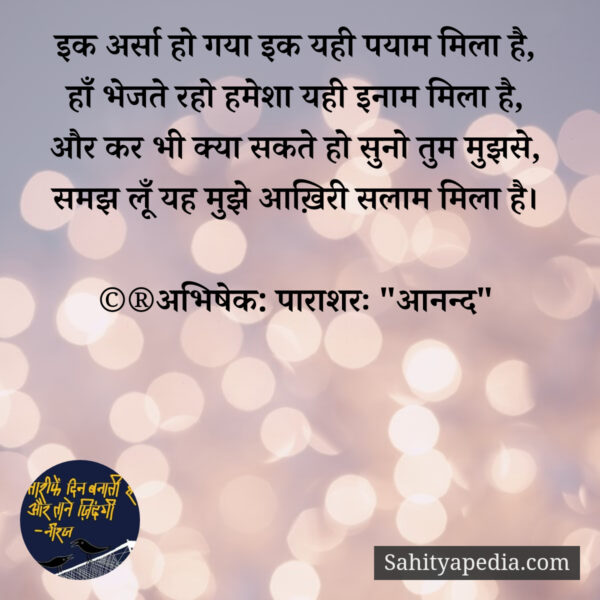 рдЗрдХ рдЕрд░реНрд╕рд╛ рд╣реЛ рдЧрдпрд╛ рдЗрдХ рдпрд╣реА рдкрдпрд╛рдо рдорд┐рд▓рд╛ рд╣реИ,