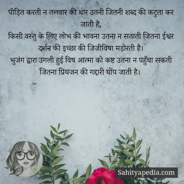 पीड़ित करती न तलवार की धार उतनी जितनी शब्द की कटुता कर जाती
