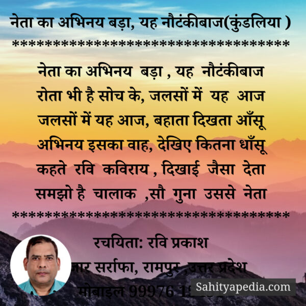 नेता का अभिनय बड़ा, यह नौटंकीबाज(कुंडलिया )