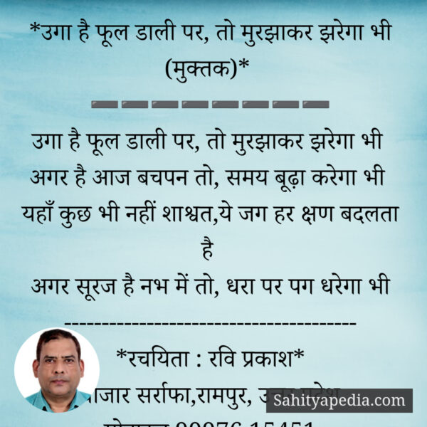 उगा है फूल डाली पर, तो मुरझाकर झरेगा भी (मुक्तक)