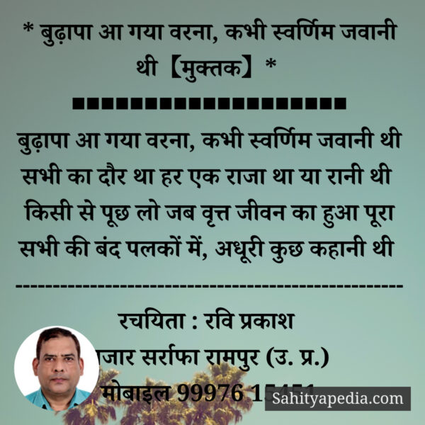 * बुढ़ापा आ गया वरना, कभी स्वर्णिम जवानी थी【मुक्तक】*