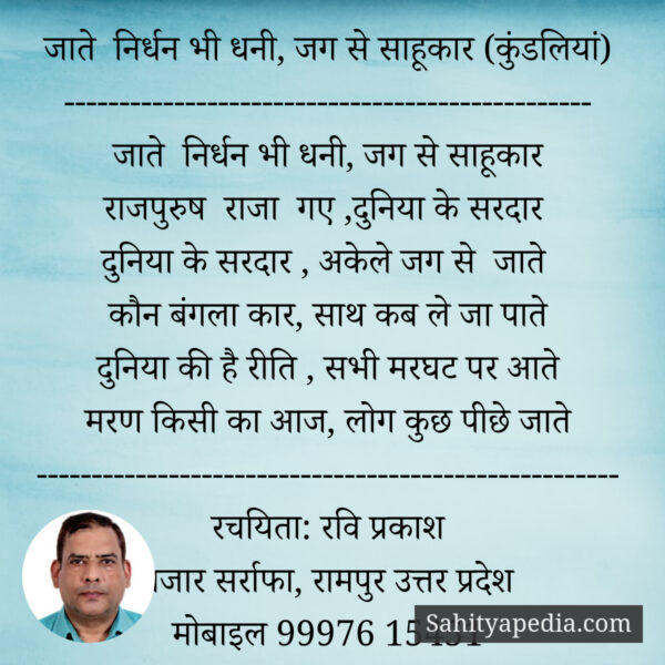 जाते निर्धन भी धनी, जग से साहूकार (कुंडलियां)