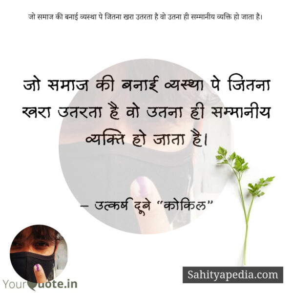 जो समाज की बनाई व्यस्था पे जितना खरा उतरता है वो उतना ही सम्