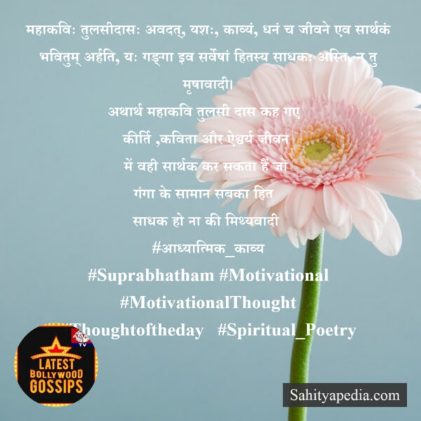 महाकविः तुलसीदासः अवदत्, यशः, काव्यं, धनं च जीवने एव सार्थकं भवितुम् अर्हति, यः गङ्गा इव सर्वेषां हितस्य साधकः अस्ति, न तु मृषावादी।