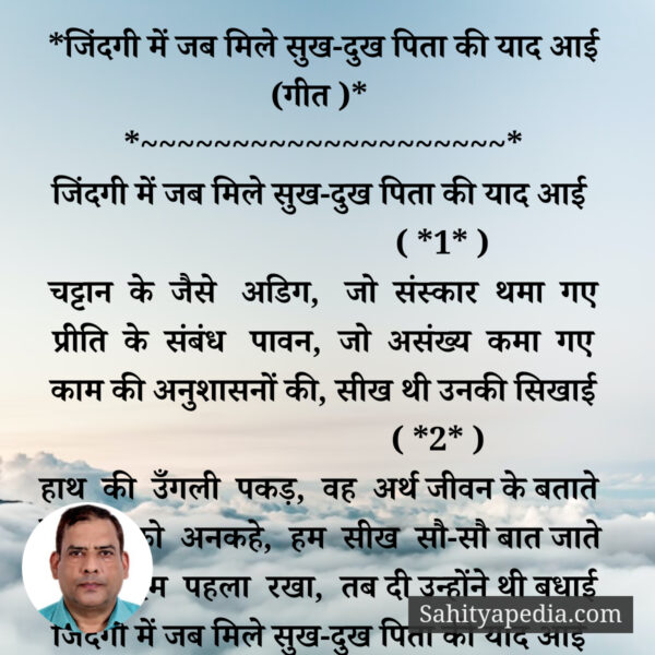 जिंदगी में जब मिले सुख-दुख पिता की याद आई (गीत )