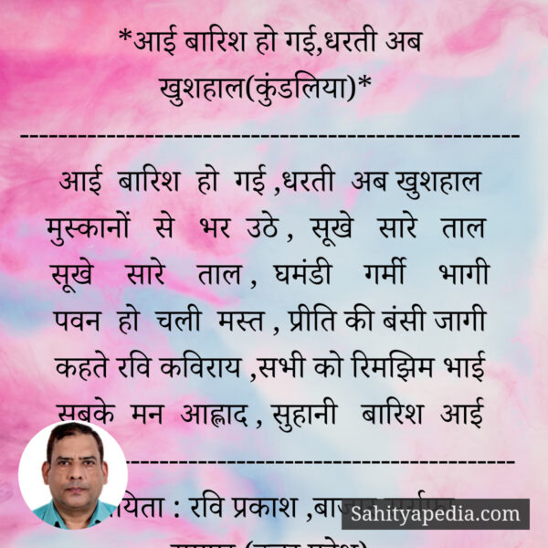 आई बारिश हो गई,धरती अब खुशहाल(कुंडलिया)
