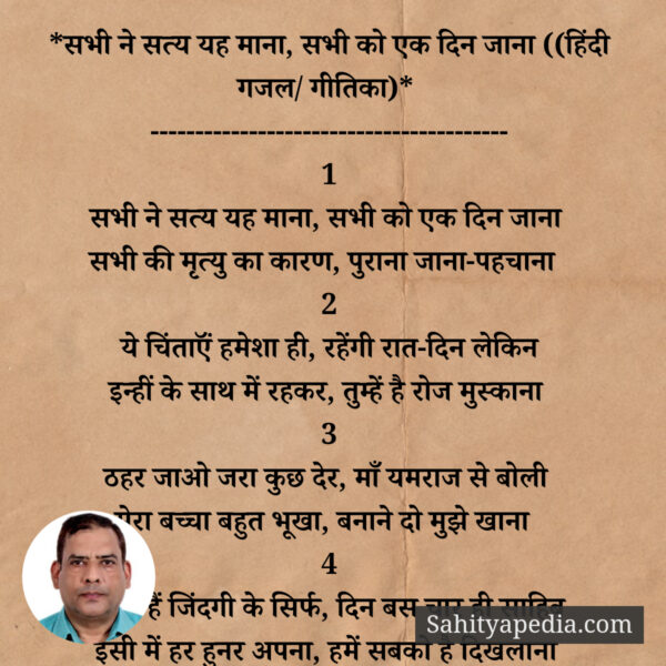 सभी ने सत्य यह माना, सभी को एक दिन जाना ((हिंदी गजल/ गीतिका)