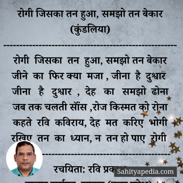 रोगी जिसका तन हुआ, समझो तन बेकार (कुंडलिया)