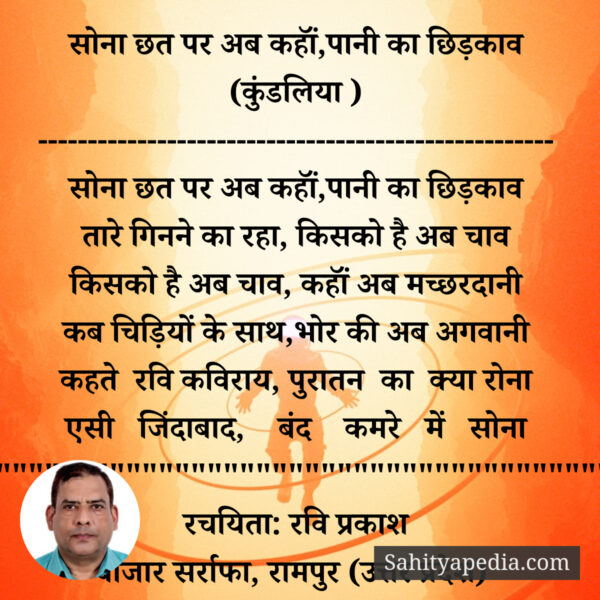 सोना छत पर अब कहॉं,पानी का छिड़काव (कुंडलिया )