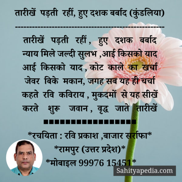 तारीखें पड़ती रहीं, हुए दशक बर्बाद (कुंडलिया)