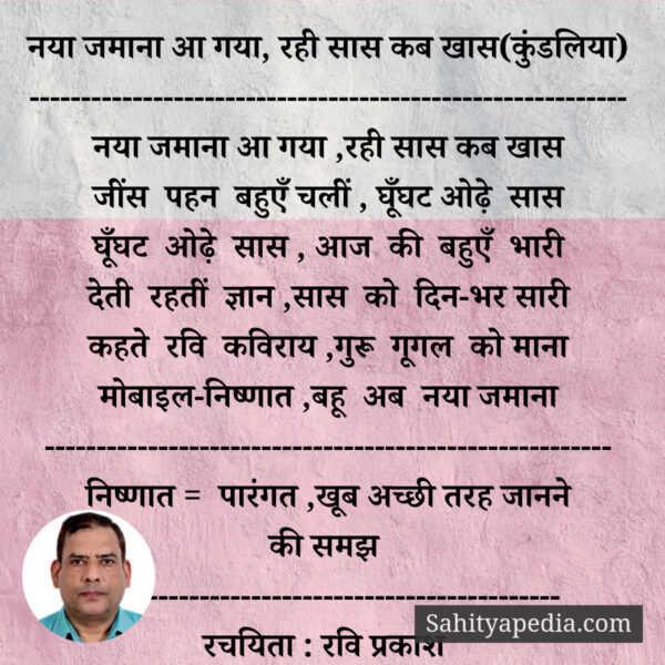 नया जमाना आ गया, रही सास कब खास(कुंडलिया)