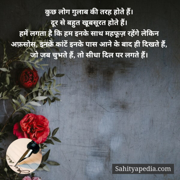हमें लगता है कि हम इनके साथ महफूज़ रहेंगे लेकिन अफ़सोस, इनके कांटें इनके पास आने के बाद ही दिखते हैं, जो जब चुभते हैं, तो सीधा दिल पर लगते हैं।