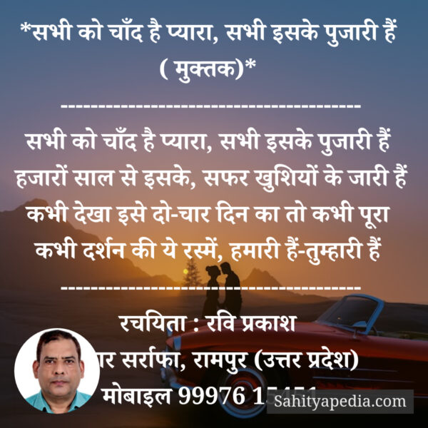 सभी को चाँद है प्यारा, सभी इसके पुजारी हैं ( मुक्तक)