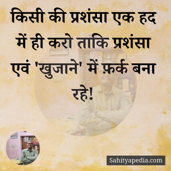 किसी की प्रशंसा एक हद में ही करो ताकि प्रशंसा एवं ‘खुजाने’ में फ़र्क बना रहे!