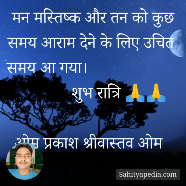 मन मस्तिष्क और तन को कुछ समय आराम देने के लिए उचित समय आ गया। शुभ रात्रि 🙏🙏