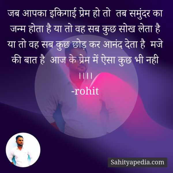 जब आपका इकिगाई प्रेम हो तो तब समुंदर का जन्म होता है या तो वह सब कुछ सोख लेता है या तो वह सब कुछ छोड़ कर आनंद देता है मजे की बात है आज के प्रेम में ऐसा कुछ भी नही ।।।।