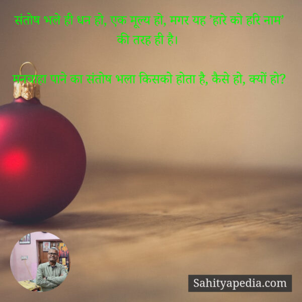 संतोष भले ही धन हो, एक मूल्य हो, मगर यह ’हारे को हरि नाम’ की