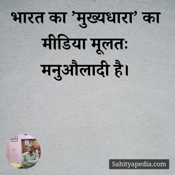 भारत का ’मुख्यधारा’ का मीडिया मूलतः मनुऔलादी है।