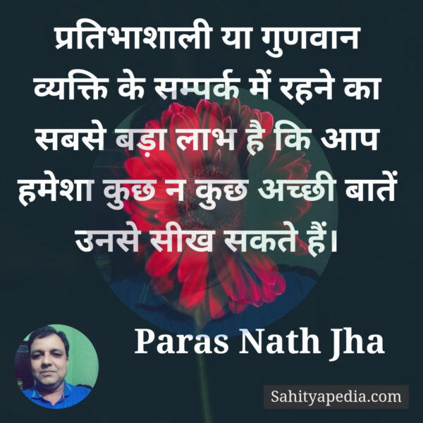 प्रतिभाशाली या गुणवान व्यक्ति के सम्पर्क में रहने का सबसे बड़ा लाभ है कि आप हमेशा कुछ न कुछ अच्छी बातें उनसे सीख सकते हैं।