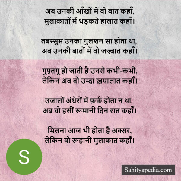 अब उनकी आँखों में वो बात कहाँ,