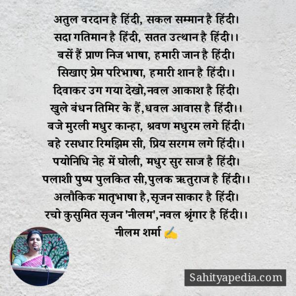 अतुल वरदान है हिंदी, सकल सम्मान है हिंदी।