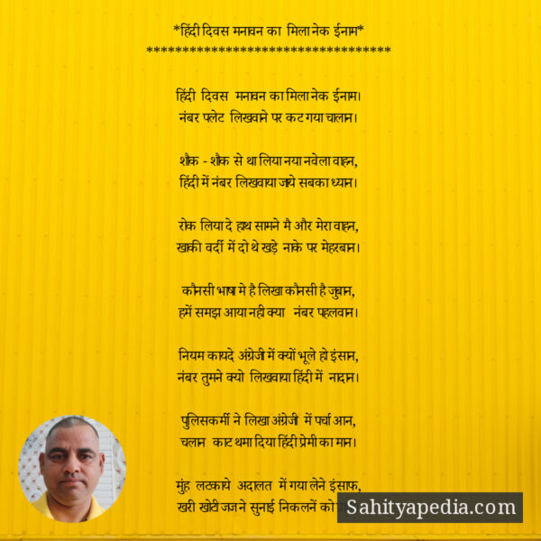चलान काट थमा दिया हिंदी प्रेमी का मान।