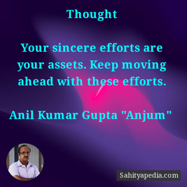 Your sincere efforts are your assets. Keep moving ahead with these efforts.