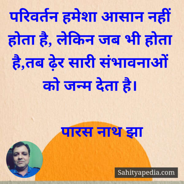 परिवर्तन हमेशा आसान नहीं होता है, लेकिन जब भी होता है,तब ढ़ेर सारी संभावनाओं को जन्म देता है।