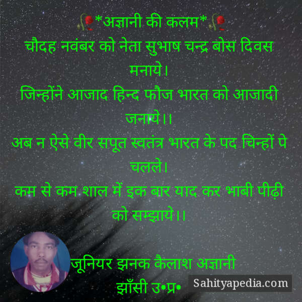 рдЪреМрджрд╣ рдирд╡рдВрдмрд░ рдХреЛ рдиреЗрддрд╛ рд╕реБрднрд╛рд╖ рдЪрдиреНрджреНрд░ рдмреЛрд╕ рджрд┐рд╡рд╕ рдордирд╛рдпреЗред
