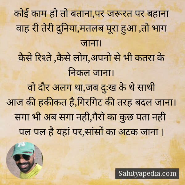 वाह री तेरी दुनिया,मतलब पूरा हुआ ,तो भाग जाना।