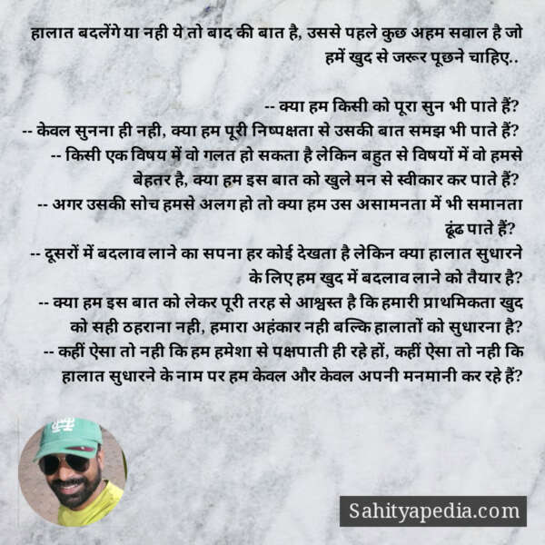 हालात बदलेंगे या नही ये तो बाद की बात है, उससे पहले कुछ अहम सवाल है जो हमें खुद से जरूर पूछने चाहिए..