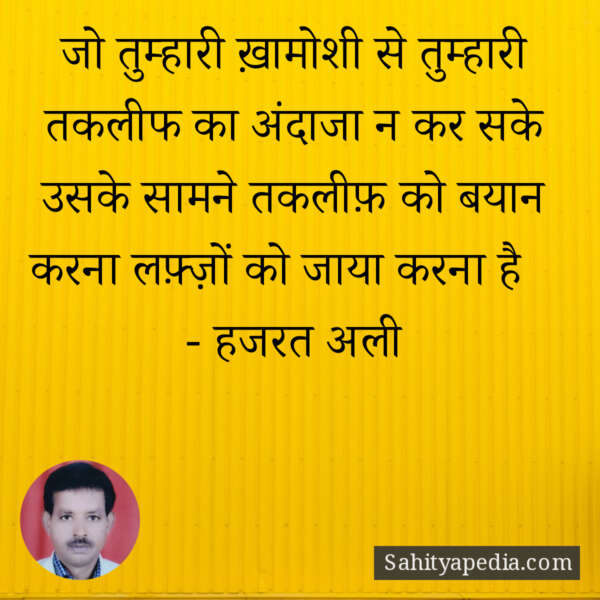 जो तुम्हारी ख़ामोशी से तुम्हारी तकलीफ का अंदाजा न कर सके उसके सामने तकलीफ़ को बयान करना लफ़्ज़ों को जाया करना है – हजरत अली