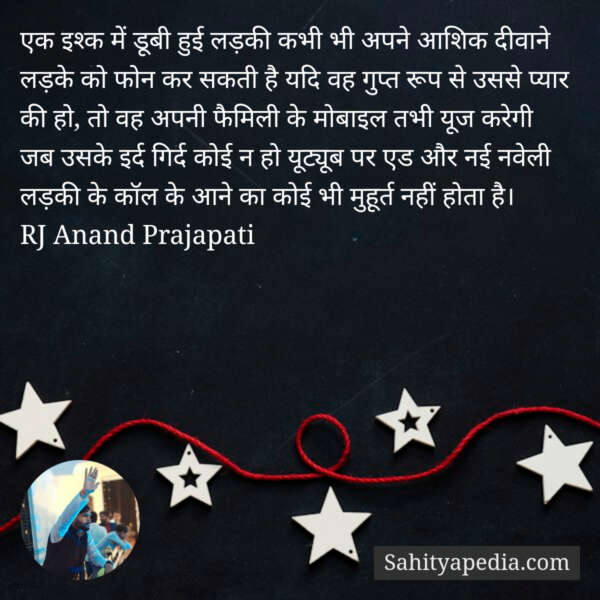 एक इश्क में डूबी हुई लड़की कभी भी अपने आशिक दीवाने लड़के को फोन कर सकती है यदि वह गुप्त रूप से उससे प्यार की हो, तो वह अपनी फैमिली के मोबाइल तभी यूज करेगी जब उसके इर्द गिर्द कोई न हो यूट्यूब पर एड और नई नवेली लड़की के कॉल के आने का कोई भी मुहूर्त नहीं होता है।
