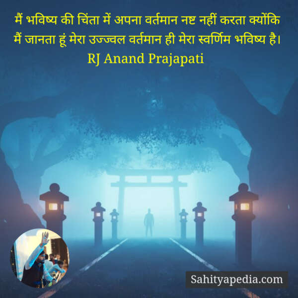 मैं भविष्य की चिंता में अपना वर्तमान नष्ट नहीं करता क्योंकि मैं जानता हूं मेरा उज्ज्वल वर्तमान ही मेरा स्वर्णिम भविष्य है।