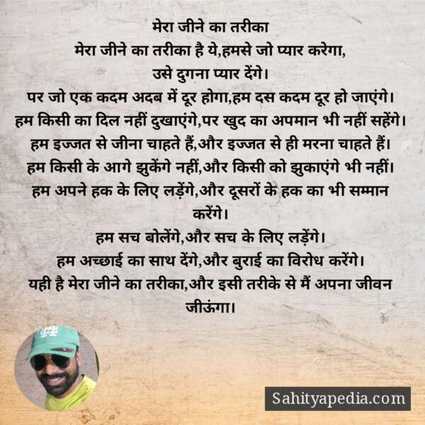यही है मेरा जीने का तरीका,और इसी तरीके से मैं अपना जीवन जीऊंगा।