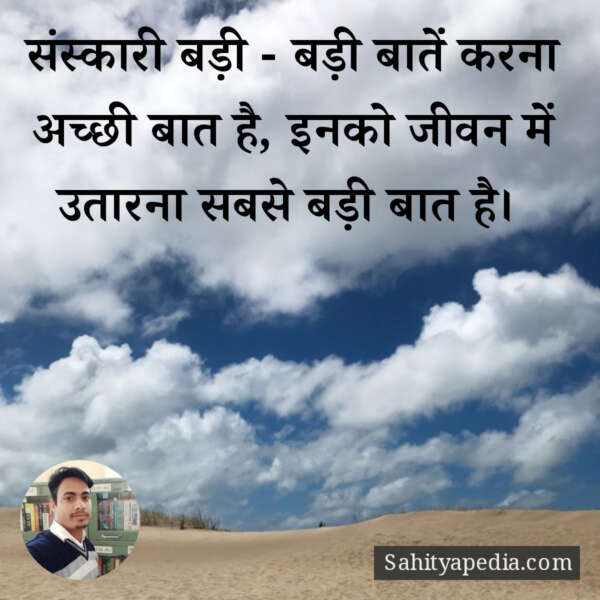 संस्कारी बड़ी – बड़ी बातें करना अच्छी बात है, इनको जीवन में उतारना सबसे बड़ी बात है।