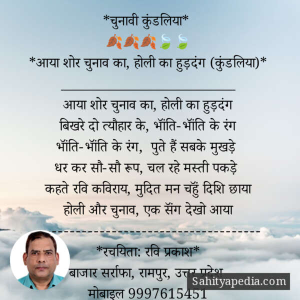 आया शोर चुनाव का, होली का हुड़दंग (कुंडलिया)