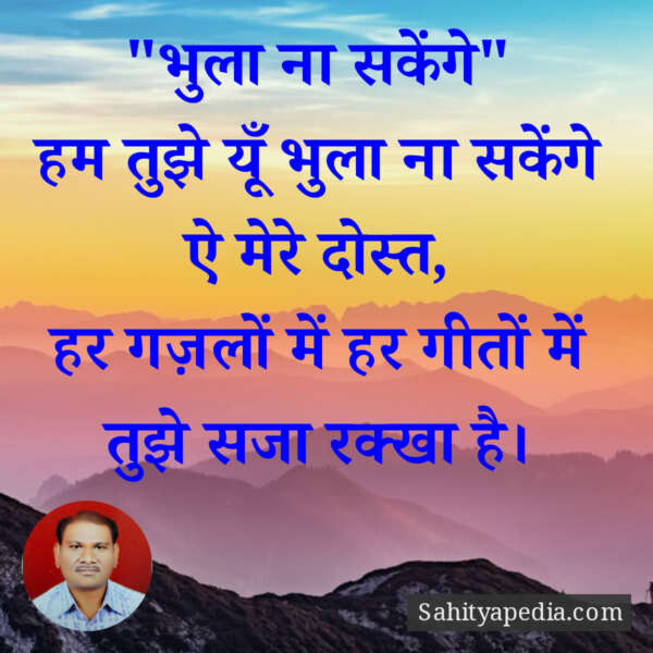 “भुला ना सकेंगे” हम तुझे यूँ भुला ना सकेंगे ऐ मेरे दोस्त, हर गज़लों में हर गीतों में तुझे सजा रक्खा है।