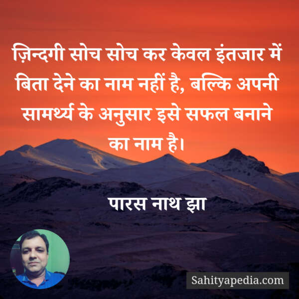 ज़िन्दगी सोच सोच कर केवल इंतजार में बिता देने का नाम नहीं है, बल्कि अपनी सामर्थ्य के अनुसार इसे सफल बनाने का नाम है।
