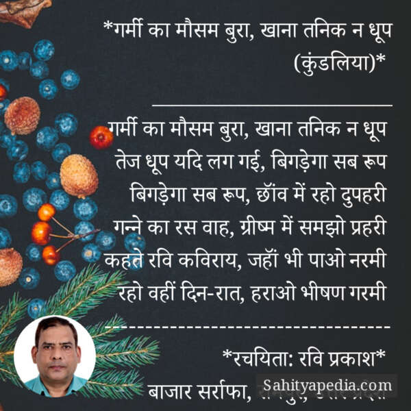 गरमी का मौसम बुरा, खाना तनिक न धूप (कुंडलिया)