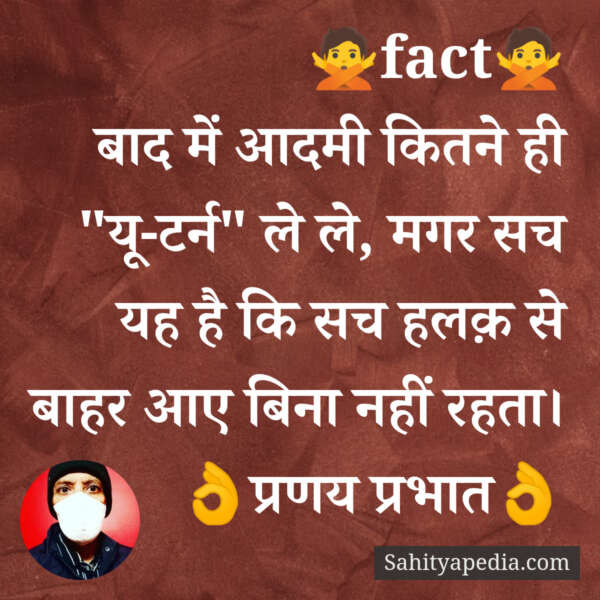 рдмрд╛рдж рдореЗрдВ рдЖрджрдореА рдХрд┐рддрдиреЗ рд╣реА “рдпреВ-рдЯрд░реНрди” рд▓реЗ рд▓реЗ, рдордЧрд░ рд╕рдЪ рдпрд╣ рд╣реИ рдХрд┐ рд╕рдЪ рд╣рд▓реШ рд╕реЗ рдмрд╛рд╣рд░ рдЖрдП рдмрд┐рдирд╛ рдирд╣реАрдВ рд░рд╣рддрд╛ред